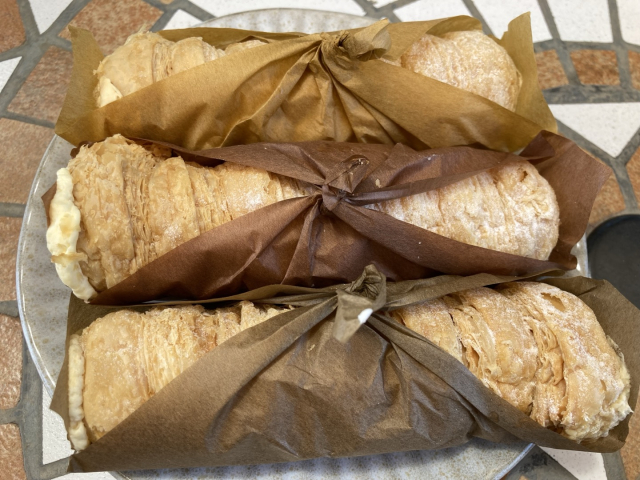 筒状のパイの中に生クリームとカスタードクリームのミックスクリームをたっぷり入っています。